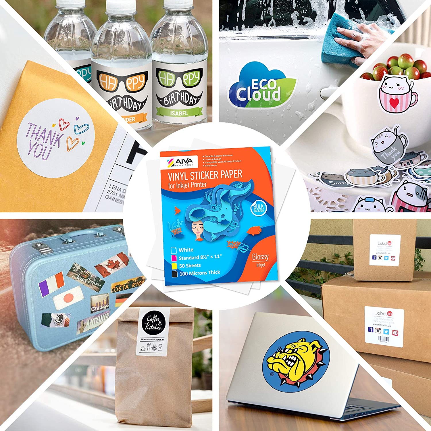 - High-Quality Printable Vinyl Paper - set includes 50 white vinyl sheets of Printable Sticker Paper for printer, Glossy finish. US Standard Letter Size - 8.5"x11". Suitable for High resolution and clear image quality
