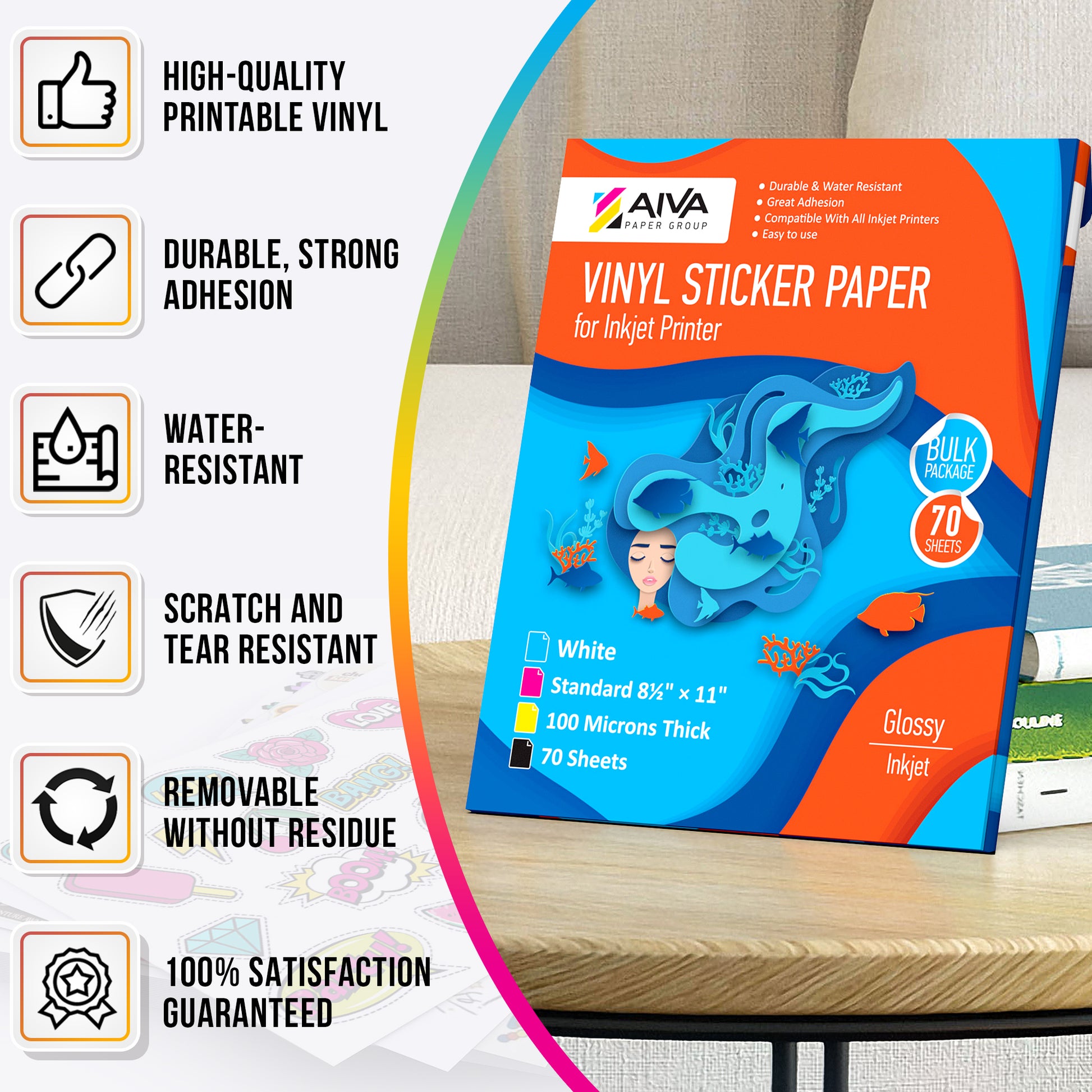 - Scratch and Tear Resistant Paper - our printable vinyl sheets for inkjet printer made with high-quality glossy printable sticker paper, your artwork will be extremely durable, bright colored and reliable